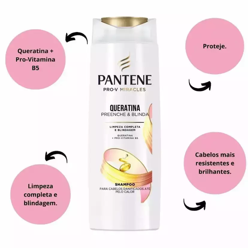 Desenvolvido para cabelos danificados pelo calor, o Shampoo Pantene Pro-V Queratina Preenche e Blinda oferece uma limpeza profunda enquanto fortalece e protege os fios. Sua fórmula com Queratina e Pro-Vitamina B5 penetra na fibra capilar, restaurando a estrutura interna e proporcionando resistência, brilho e maciez. Ideal para uso diário, deixa os cabelos mais alinhados e com aspecto saudável, sem pesar nos fios.